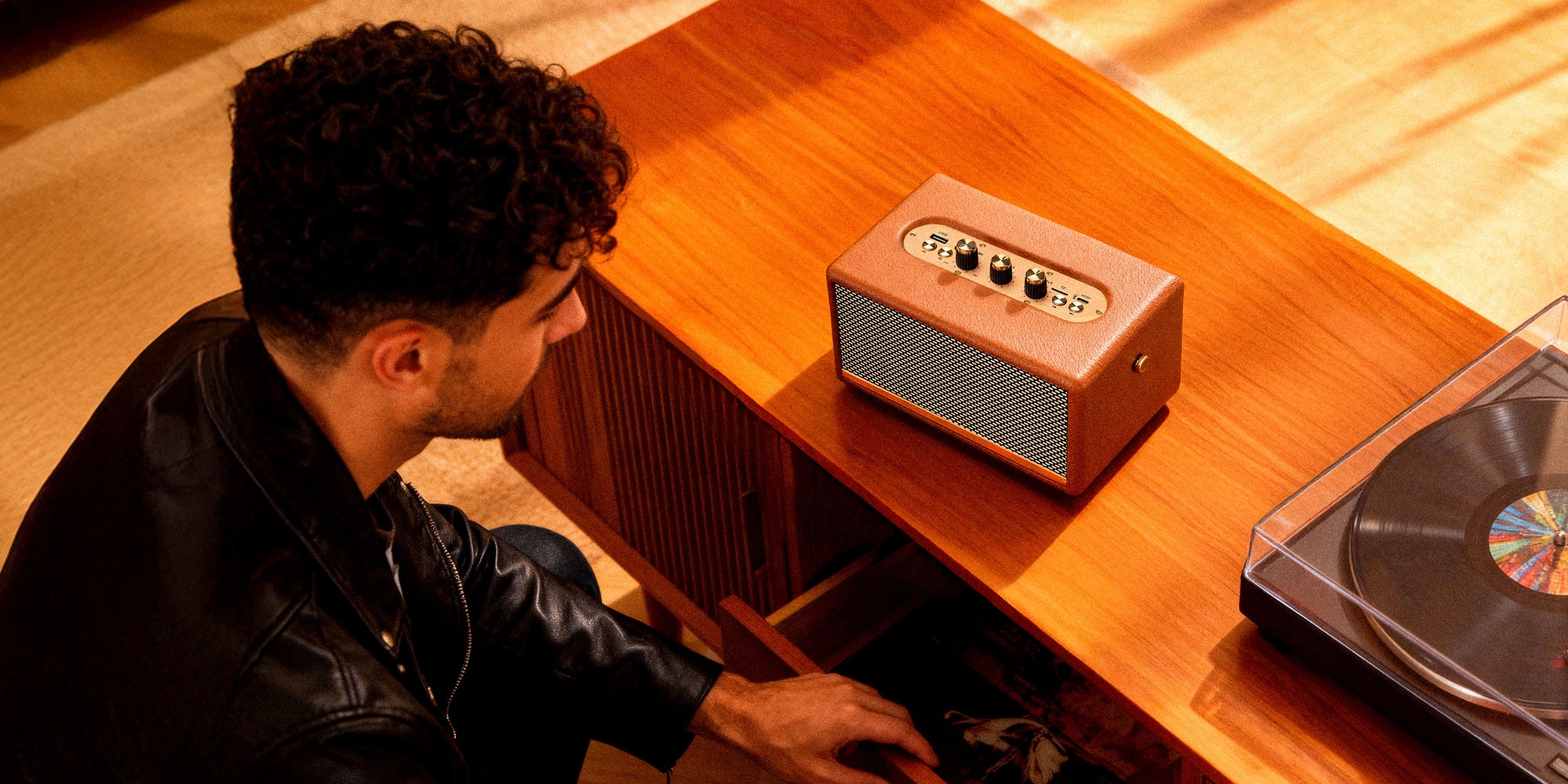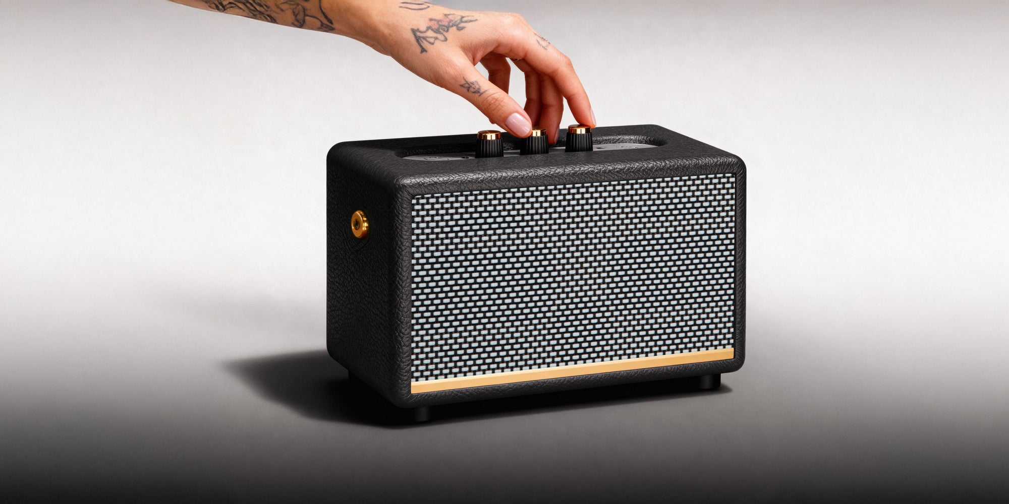 Inspired by the iconic Marshall speaker, the Elvig Bluetooth Speaker delivers bold sound and timeless design.